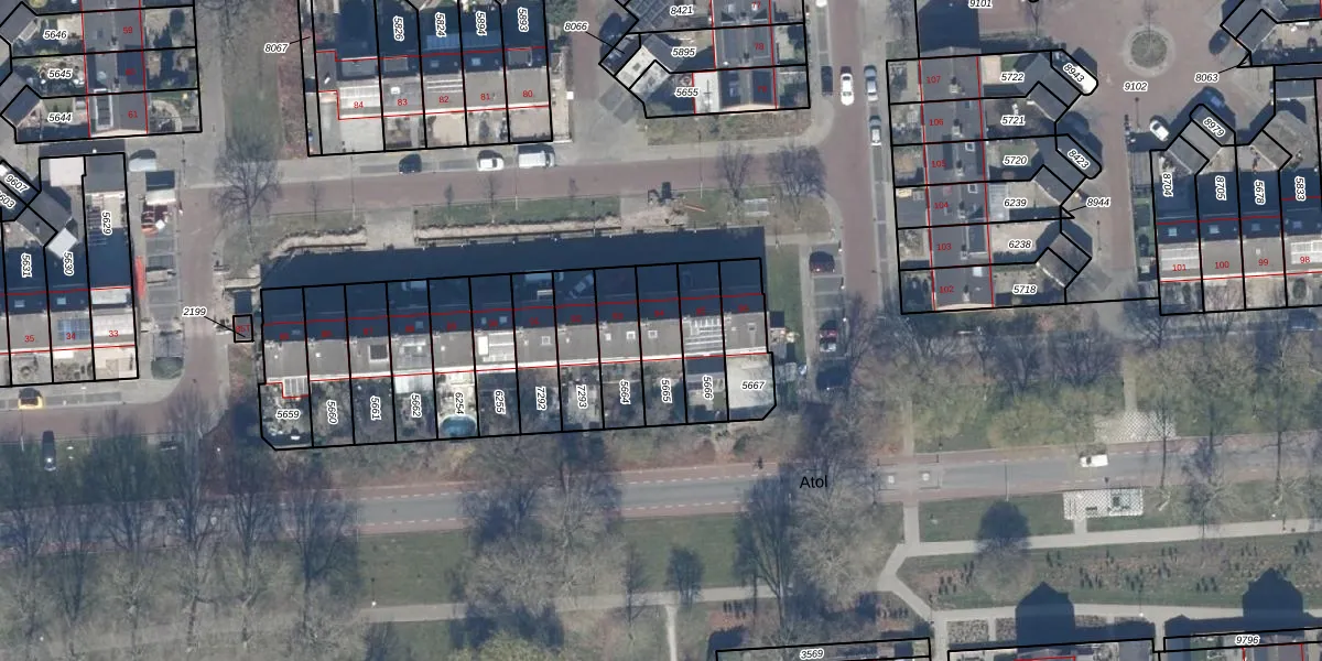 Gebruik de zoekbalk of klik op een perceel voor informatie over de adressen binnen dit perceel.