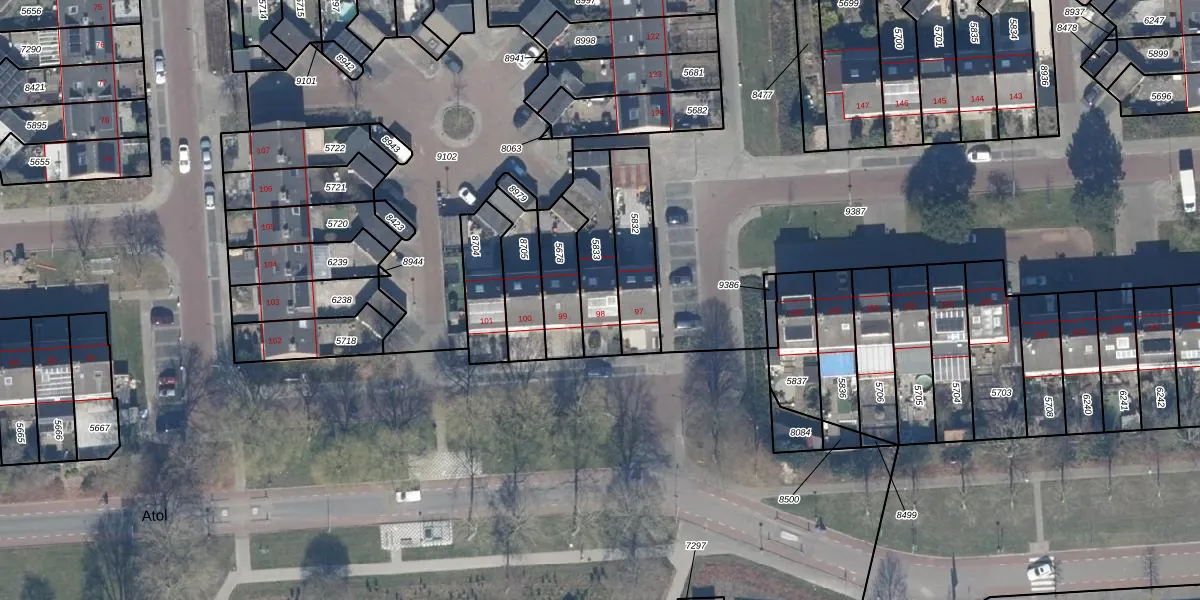 Het adres ligt op het perceel LLS00-K-5833, dat zich in de kadastrale gemeente Lelystad bevindt. De gemiddelde perceelgrootte in Lelystad is 2,1 ha. Dit perceel is kleiner: de perceeloppervlakte bedraagt 215 m². Het grootste perceel in de kadastrale gemeente is 78,50 km². Het kleinste perceel heeft een oppervlakte van 0 m². Er zijn geen andere adressen aanwezig op het perceel. De huidige grenzen van het perceel zijn digitaal in de Basisregistratie Kadaster (BRK) geregistreerd op 13-07-2010.
