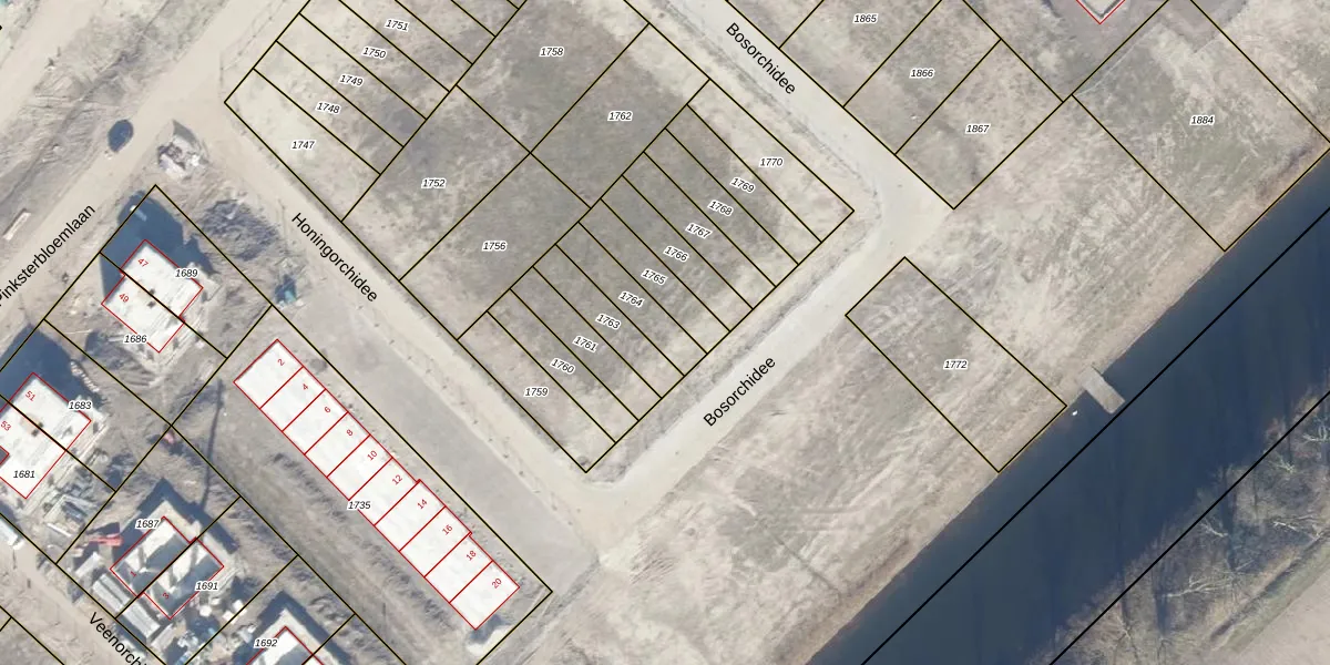 Het perceel waarop Bosorchidee 18 staat heeft een oppervlakte van 134 m². Dit is een middelgroot perceel. De perceeloppervlakte wordt geregistreerd door het Kadaster. Gedetailleerde informatie over de maten van dit perceel kunt u vinden in het rapport Kadastrale kaart met maatvoering van Bosorchidee 18.