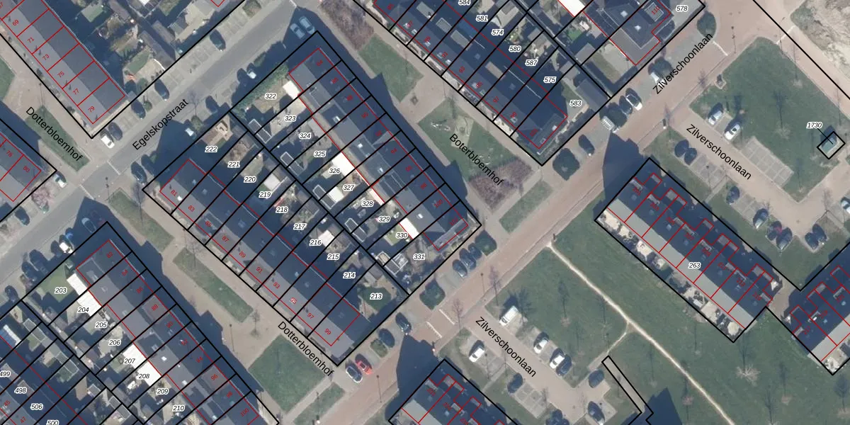 Gebruik de zoekbalk of klik op een perceel voor informatie over de adressen binnen dit perceel.