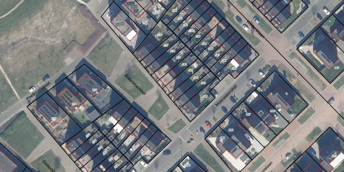 Boterbloemhof 25 is gelegen op kadastraal perceel LLS00A181. Deze kadastrale aanduiding is uniek en wordt gebruikt door het Kadaster om eigendomsrechten en andere zakelijke rechten vast te leggen. Het perceel maakt onderdeel uit van de kadastrale gemeente Lelystad.