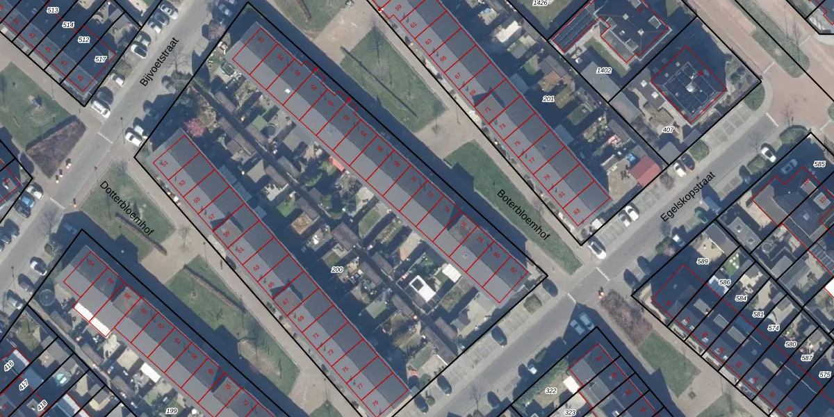 Boterbloemhof 72 is gelegen op kadastraal perceel LLS00A200. Deze kadastrale aanduiding is uniek en wordt gebruikt door het Kadaster om eigendomsrechten en andere zakelijke rechten vast te leggen. Het perceel maakt onderdeel uit van de kadastrale gemeente Lelystad.