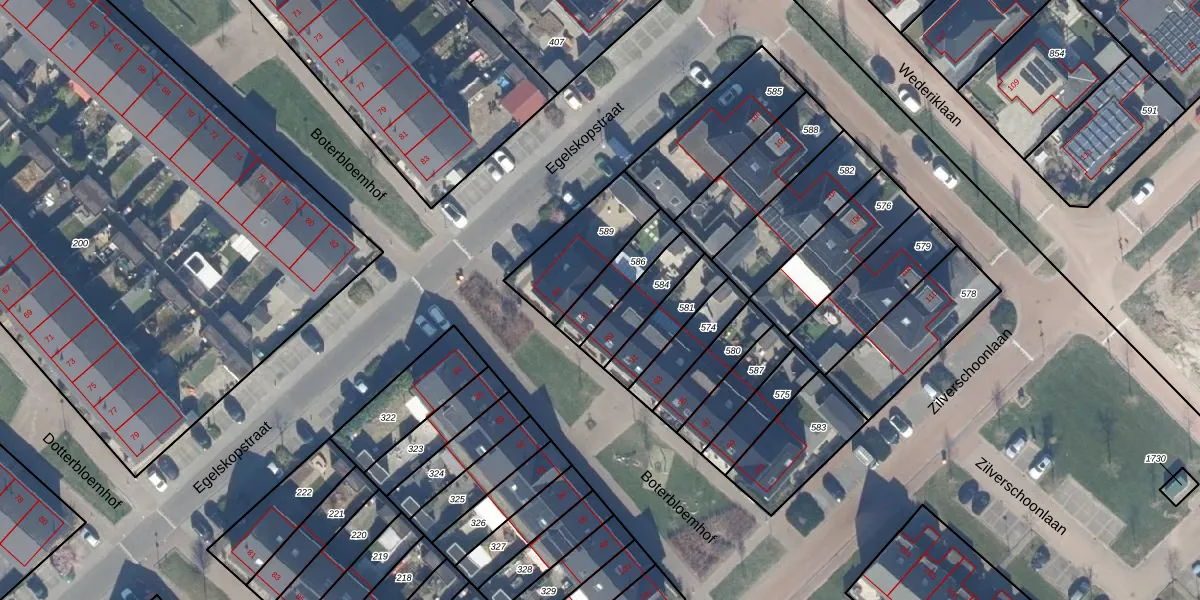 Gebruik de zoekbalk of klik op een perceel voor informatie over de adressen binnen dit perceel.