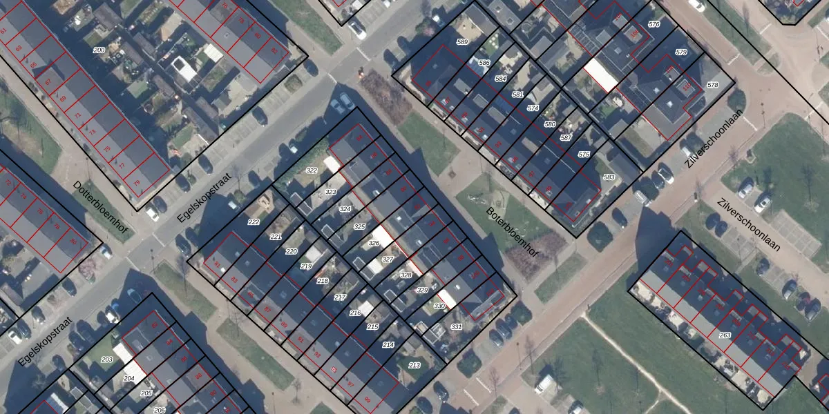 Gebruik de zoekbalk of klik op een perceel voor informatie over de adressen binnen dit perceel.
