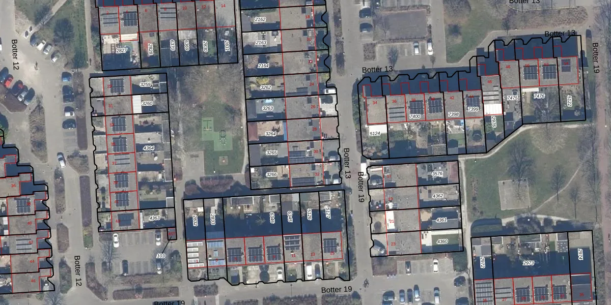 Gebruik de zoekbalk of klik op een perceel voor informatie over de adressen binnen dit perceel.