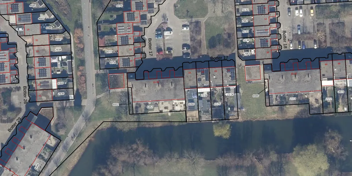 Het perceel waarop Botter 17 42 staat heeft een oppervlakte van 726 m². Dit is een groot perceel. De perceeloppervlakte wordt geregistreerd door het Kadaster. Gedetailleerde informatie over de maten van dit perceel kunt u vinden in het rapport Kadastrale kaart met maatvoering van Botter 17 42.