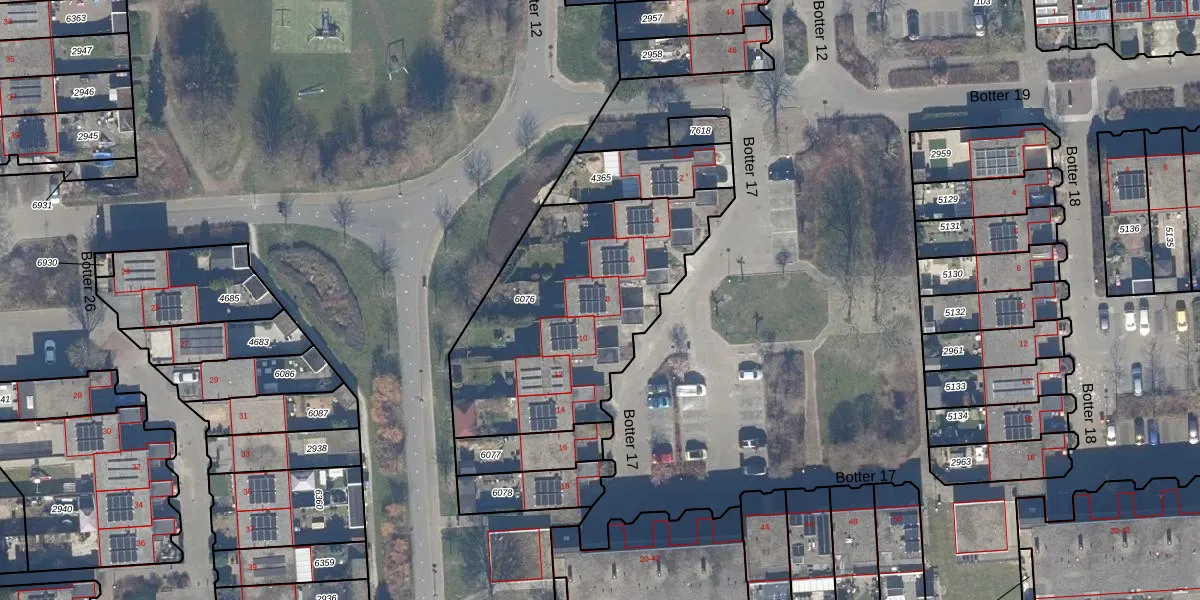 Het perceel waarop Botter 17 8 staat heeft een oppervlakte van 1142 m². Dit is een zeer groot perceel. De perceeloppervlakte wordt geregistreerd door het Kadaster. Gedetailleerde informatie over de maten van dit perceel kunt u vinden in het rapport Kadastrale kaart met maatvoering van Botter 17 8.