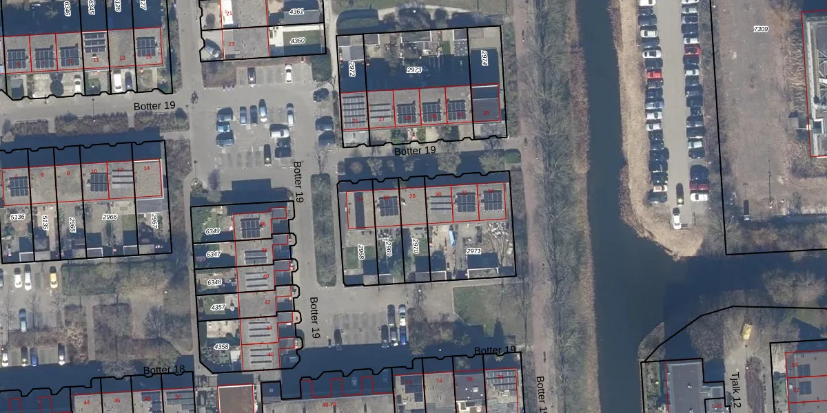 Gebruik de zoekbalk of klik op een perceel voor informatie over de adressen binnen dit perceel.