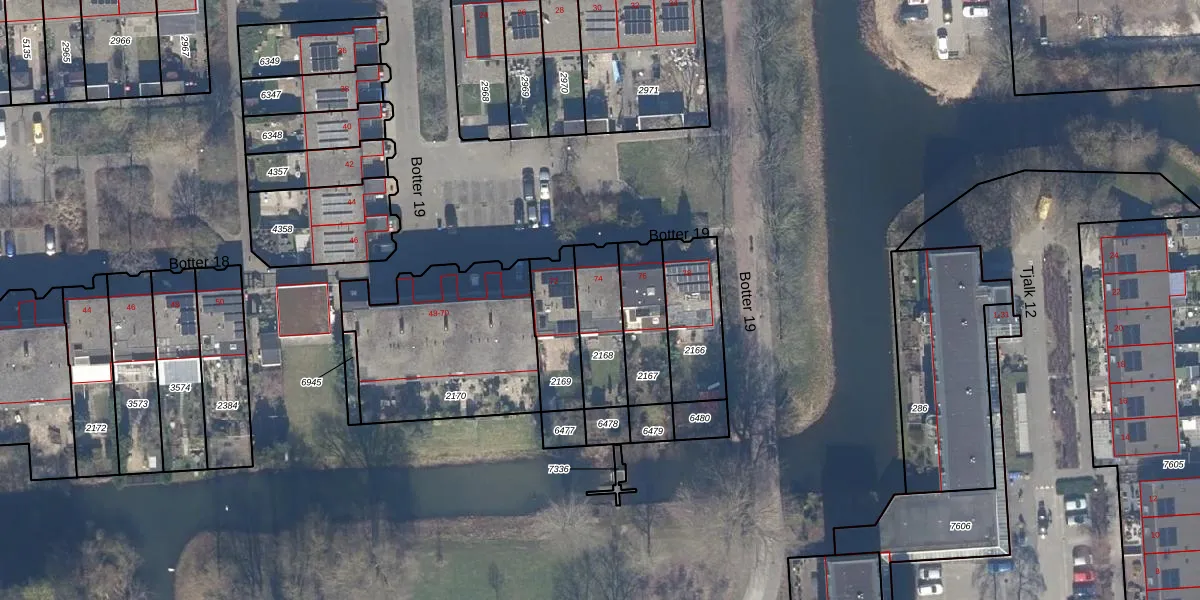 Gebruik de zoekbalk of klik op een perceel voor informatie over de adressen binnen dit perceel.