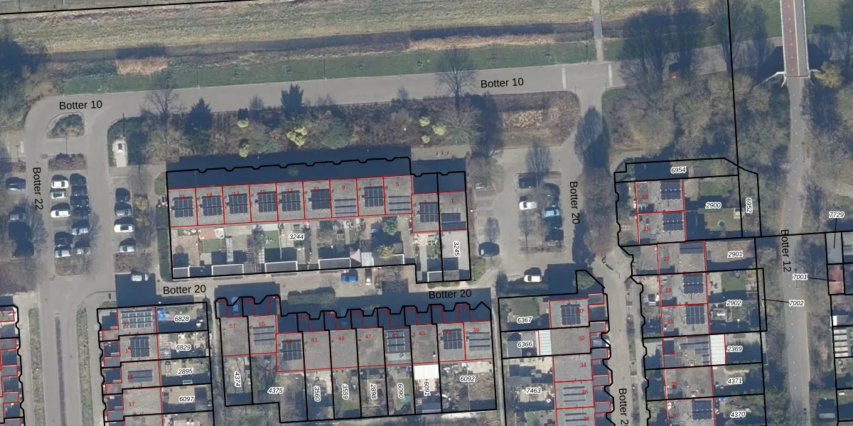 Het perceel waarop Botter 20 3 staat heeft een oppervlakte van 1587 m². Dit is een zeer groot perceel. De perceeloppervlakte wordt geregistreerd door het Kadaster. Gedetailleerde informatie over de maten van dit perceel kunt u vinden in het rapport Kadastrale kaart met maatvoering van Botter 20 3.