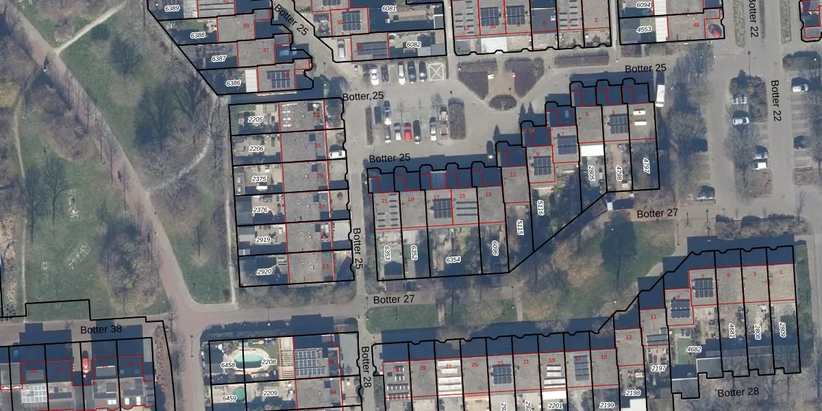 Gebruik de zoekbalk of klik op een perceel voor informatie over de adressen binnen dit perceel.