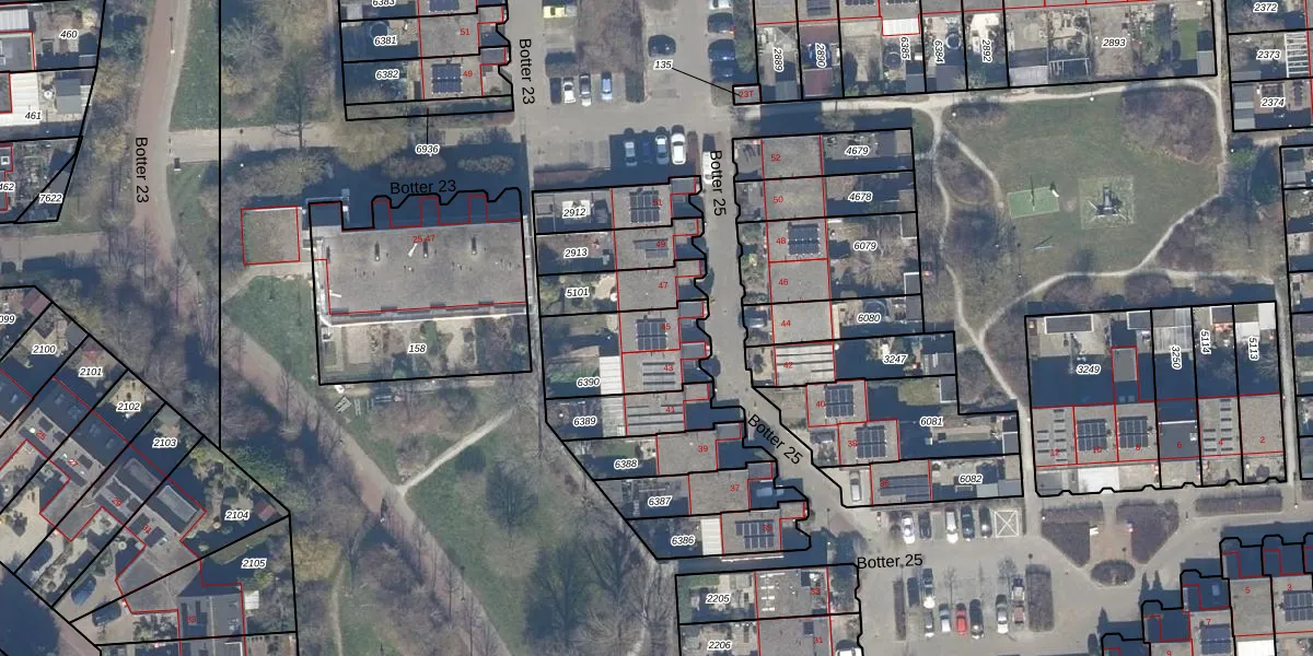 Botter 25 45 is gelegen op kadastraal perceel LLS00O6390. Deze kadastrale aanduiding is uniek en wordt gebruikt door het Kadaster om eigendomsrechten en andere zakelijke rechten vast te leggen. Het perceel maakt onderdeel uit van de kadastrale gemeente Lelystad.