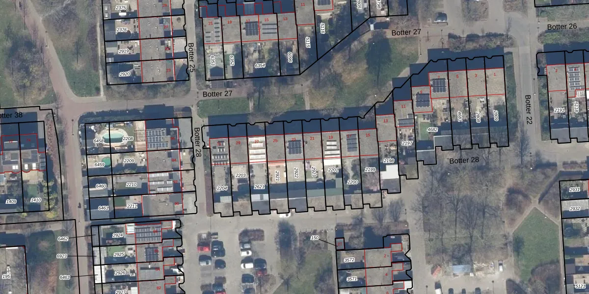 Gebruik de zoekbalk of klik op een perceel voor informatie over de adressen binnen dit perceel.