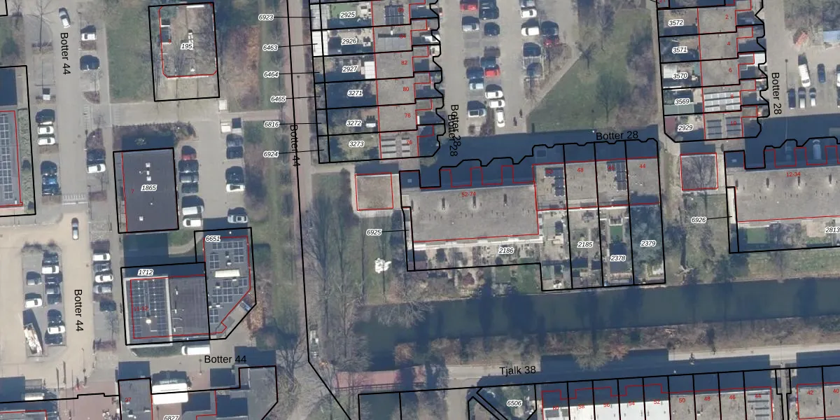 Het perceel waarop Botter 28 74 staat heeft een oppervlakte van 984 m². Dit is een groot perceel. De perceeloppervlakte wordt geregistreerd door het Kadaster. Gedetailleerde informatie over de maten van dit perceel kunt u vinden in het rapport Kadastrale kaart met maatvoering van Botter 28 74.