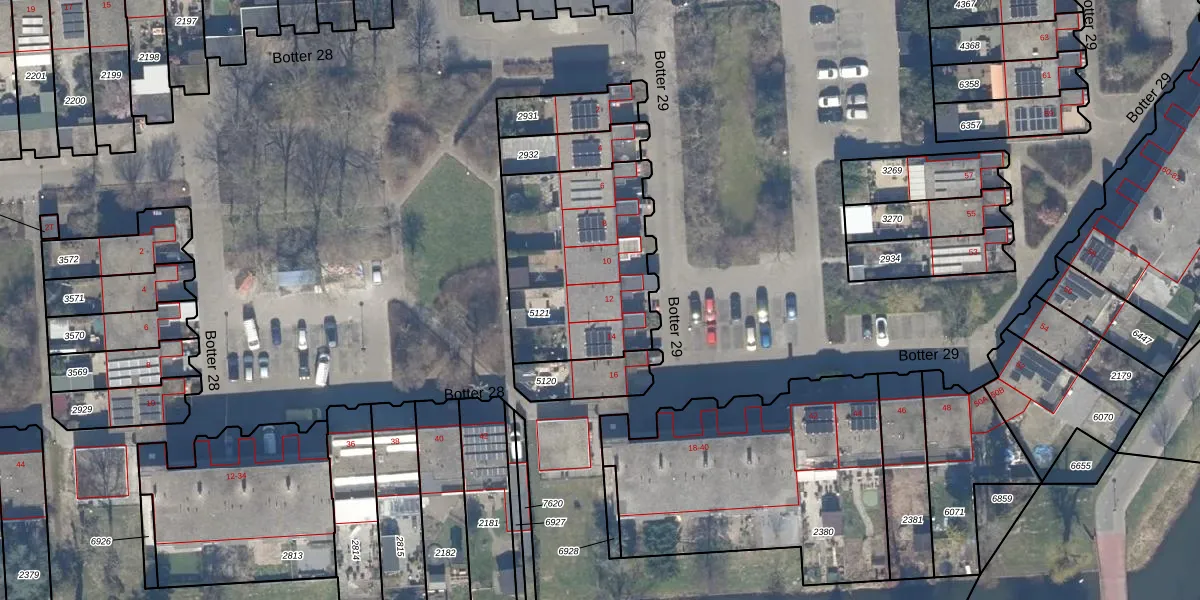Het perceel waarop Botter 29 12 staat heeft een oppervlakte van 759 m². Dit is een groot perceel. De perceeloppervlakte wordt geregistreerd door het Kadaster. Gedetailleerde informatie over de maten van dit perceel kunt u vinden in het rapport Kadastrale kaart met maatvoering van Botter 29 12.