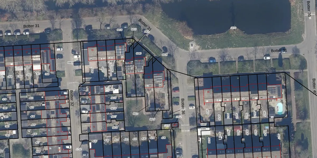 Gebruik de zoekbalk of klik op een perceel voor informatie over de adressen binnen dit perceel.