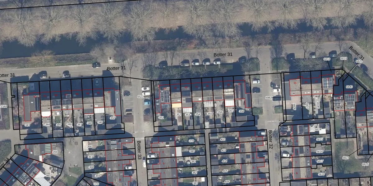 Gebruik de zoekbalk of klik op een perceel voor informatie over de adressen binnen dit perceel.