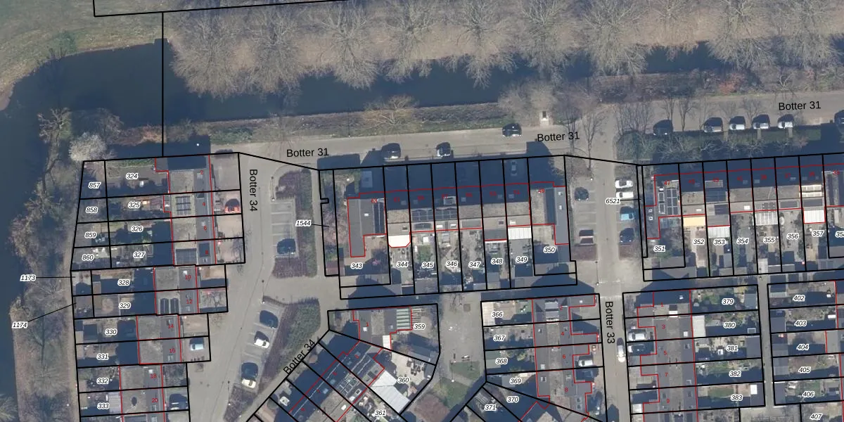Het perceel waarop Botter 31 59 staat heeft een oppervlakte van 176 m². Dit is een middelgroot perceel. De perceeloppervlakte wordt geregistreerd door het Kadaster. Gedetailleerde informatie over de maten van dit perceel kunt u vinden in het rapport Kadastrale kaart met maatvoering van Botter 31 59.