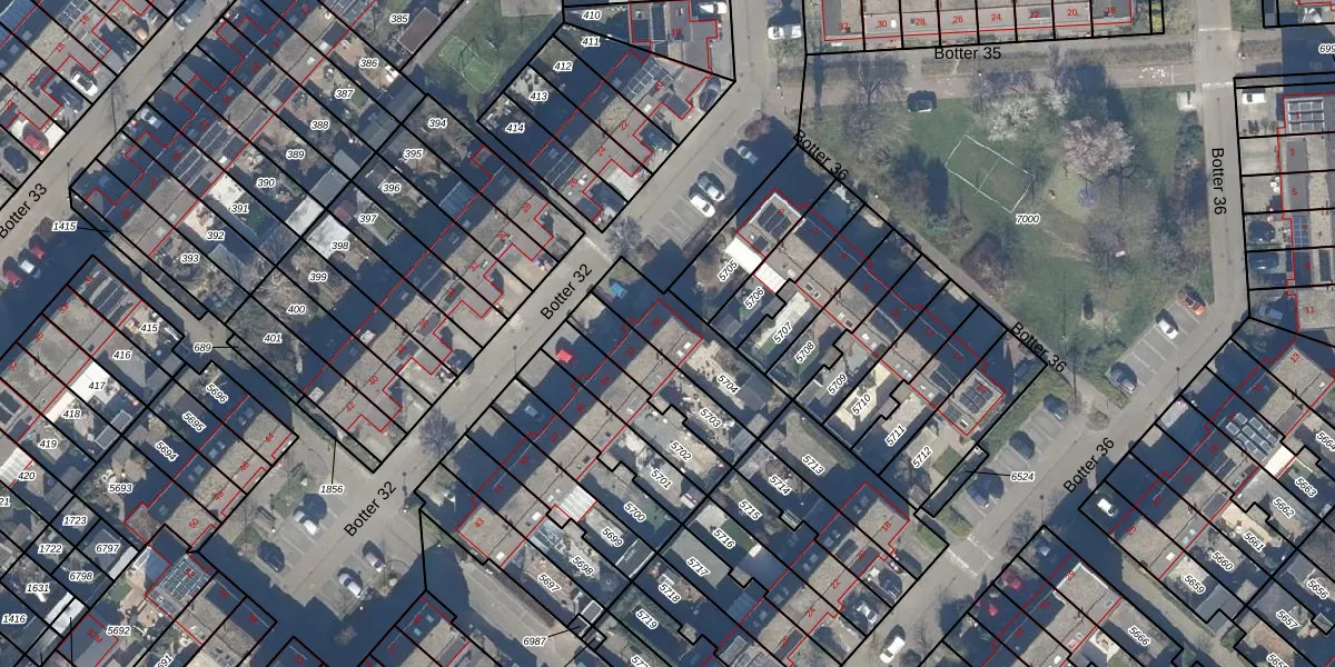 Het perceel waarop Botter 32 29 staat heeft een oppervlakte van 253 m². Dit is een middelgroot perceel. De perceeloppervlakte wordt geregistreerd door het Kadaster. Gedetailleerde informatie over de maten van dit perceel kunt u vinden in het rapport Kadastrale kaart met maatvoering van Botter 32 29.