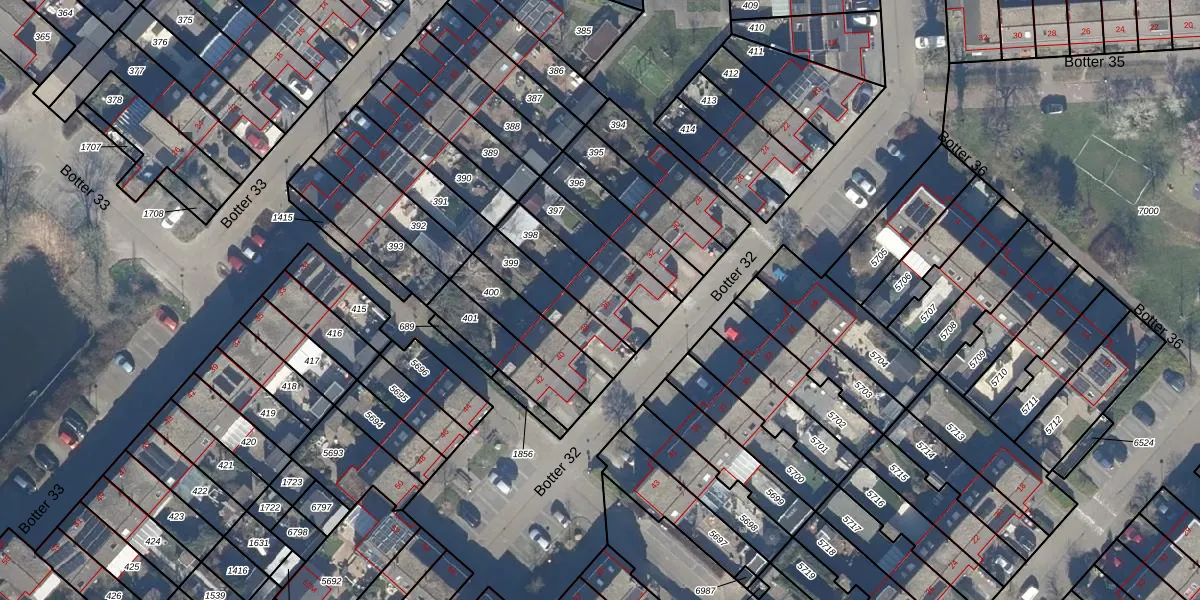 Het perceel waarop Botter 32 36 staat heeft een oppervlakte van 179 m². Dit is een middelgroot perceel. De perceeloppervlakte wordt geregistreerd door het Kadaster. Gedetailleerde informatie over de maten van dit perceel kunt u vinden in het rapport Kadastrale kaart met maatvoering van Botter 32 36.