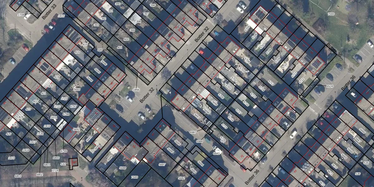 Gebruik de zoekbalk of klik op een perceel voor informatie over de adressen binnen dit perceel.