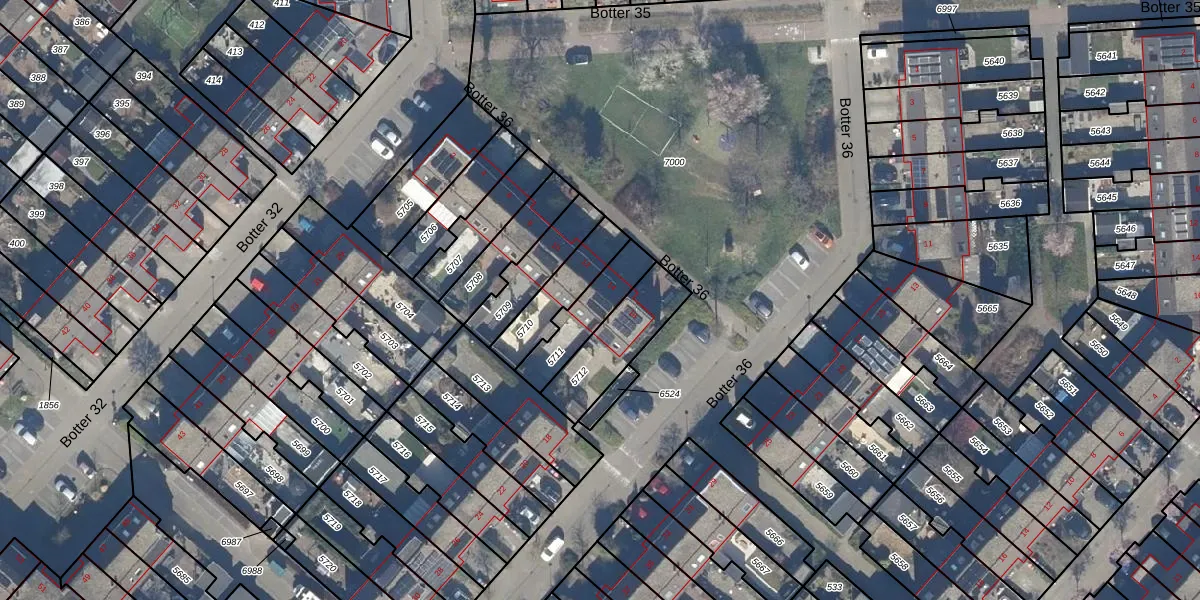 Gebruik de zoekbalk of klik op een perceel voor informatie over de adressen binnen dit perceel.