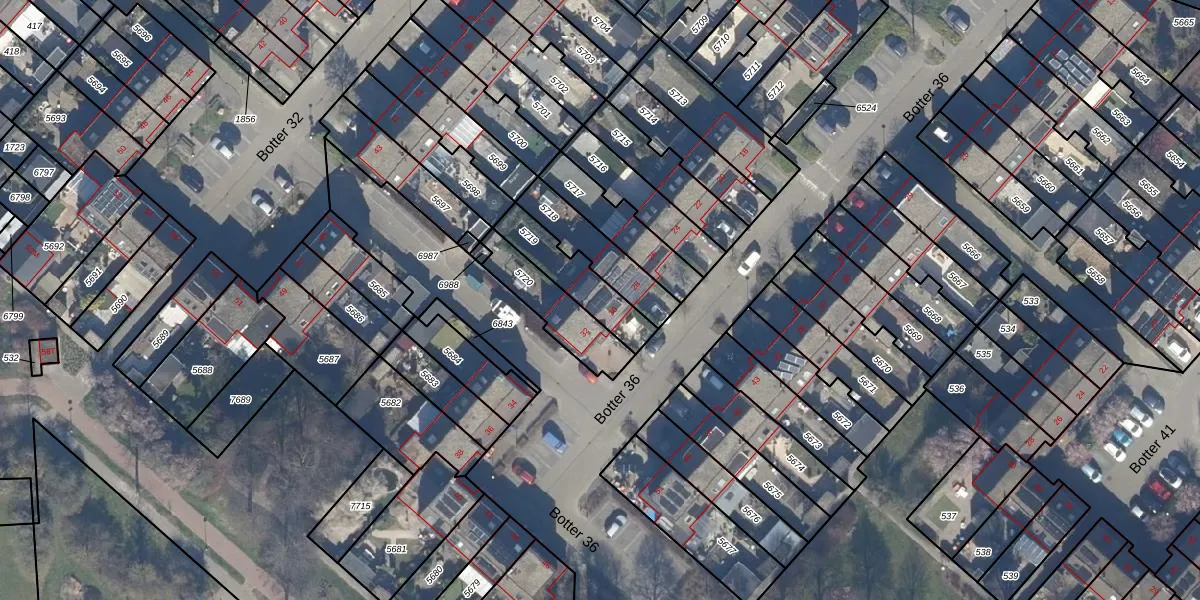 Het perceel waarop Botter 36 30 staat heeft een oppervlakte van 182 m². Dit is een middelgroot perceel. De perceeloppervlakte wordt geregistreerd door het Kadaster. Gedetailleerde informatie over de maten van dit perceel kunt u vinden in het rapport Kadastrale kaart met maatvoering van Botter 36 30.
