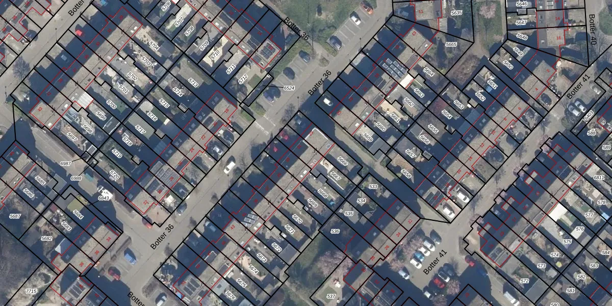 Het perceel waarop Botter 36 31 staat heeft een oppervlakte van 175 m². Dit is een middelgroot perceel. De perceeloppervlakte wordt geregistreerd door het Kadaster. Gedetailleerde informatie over de maten van dit perceel kunt u vinden in het rapport Kadastrale kaart met maatvoering van Botter 36 31.