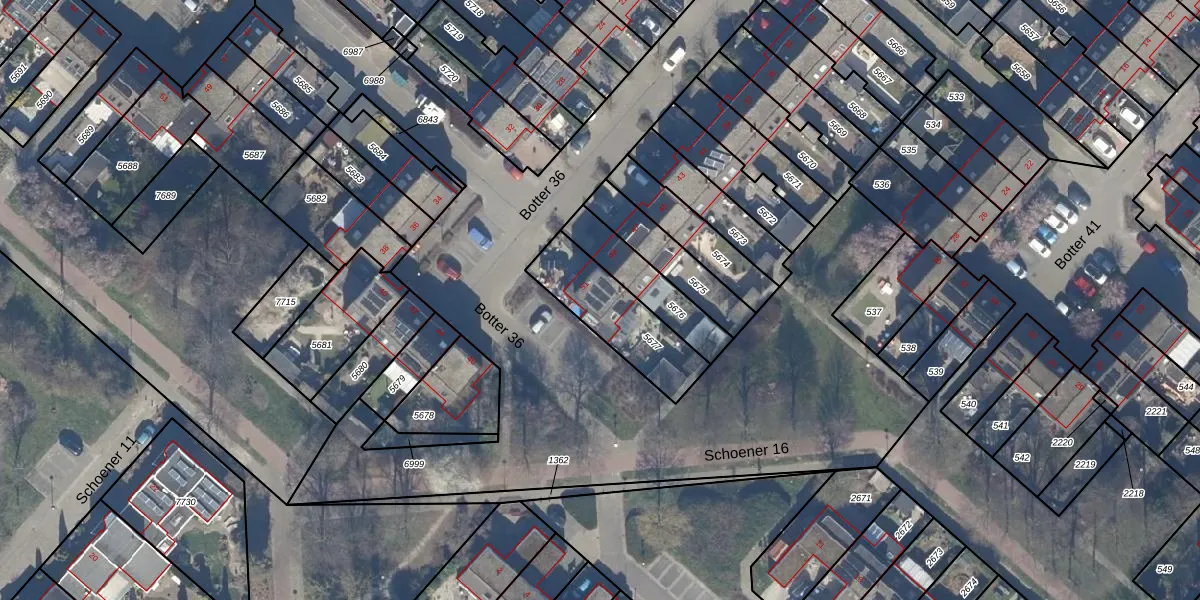 Het perceel waarop Botter 36 51 staat heeft een oppervlakte van 297 m². Dit is een middelgroot perceel. De perceeloppervlakte wordt geregistreerd door het Kadaster. Gedetailleerde informatie over de maten van dit perceel kunt u vinden in het rapport Kadastrale kaart met maatvoering van Botter 36 51.