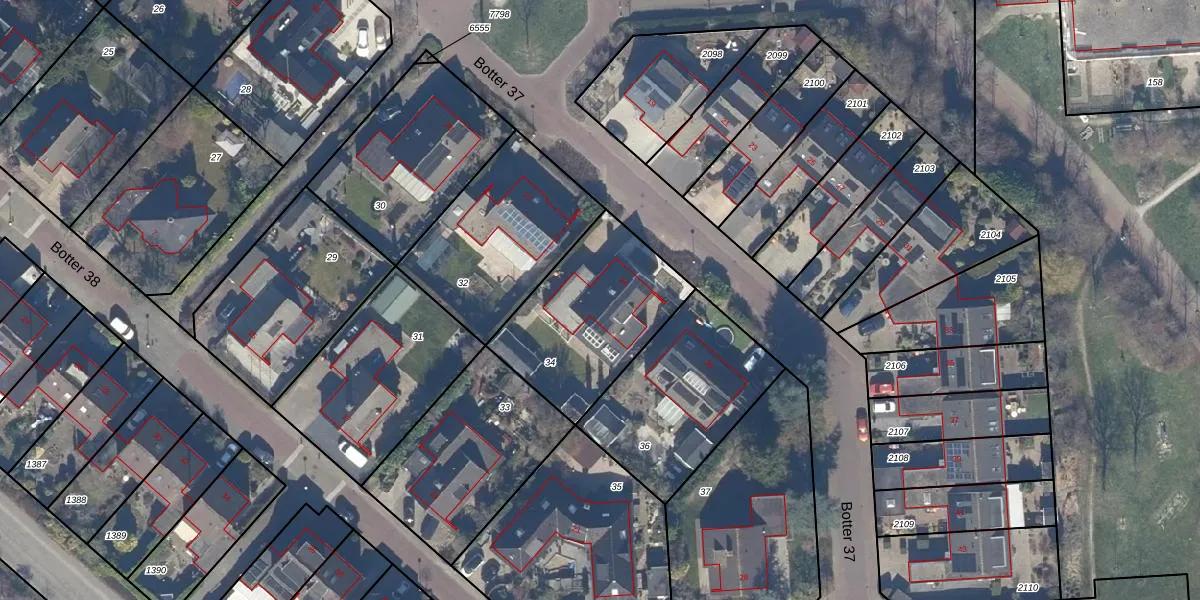 Het perceel waarop Botter 37 24 staat heeft een oppervlakte van 606 m². Dit is een groot perceel. De perceeloppervlakte wordt geregistreerd door het Kadaster. Gedetailleerde informatie over de maten van dit perceel kunt u vinden in het rapport Kadastrale kaart met maatvoering van Botter 37 24.