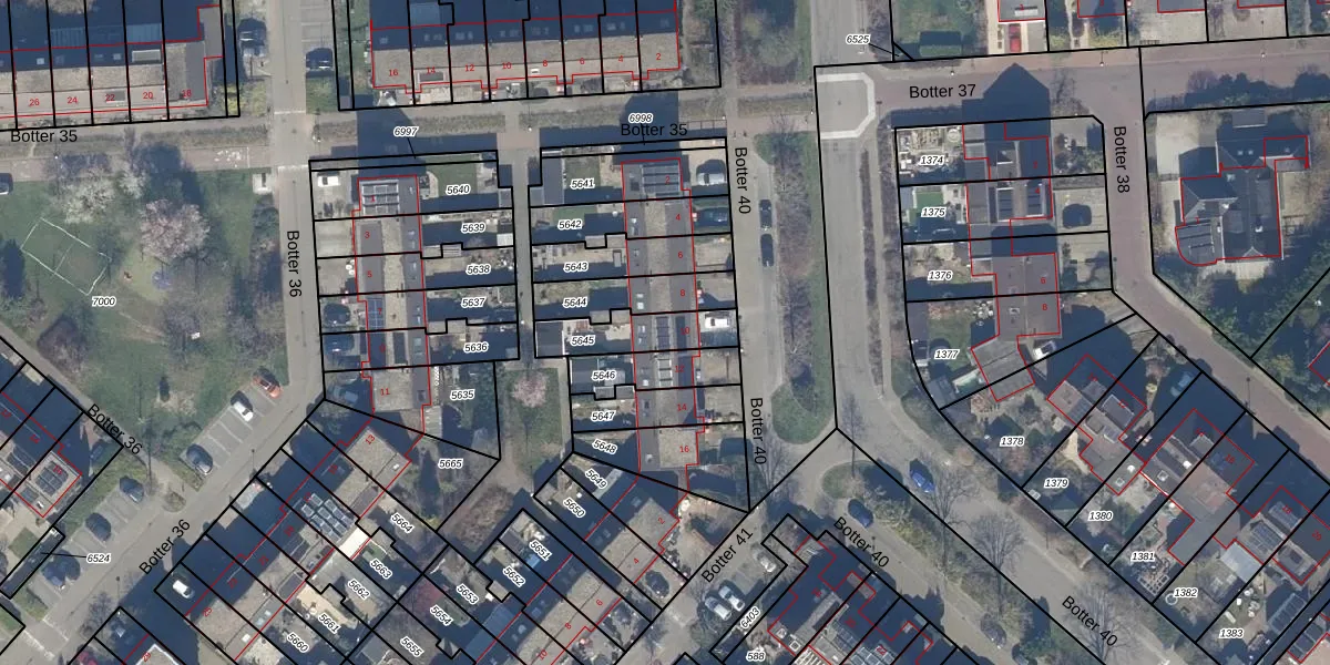 Het perceel waarop Botter 40 10 staat heeft een oppervlakte van 173 m². Dit is een middelgroot perceel. De perceeloppervlakte wordt geregistreerd door het Kadaster. Gedetailleerde informatie over de maten van dit perceel kunt u vinden in het rapport Kadastrale kaart met maatvoering van Botter 40 10.
