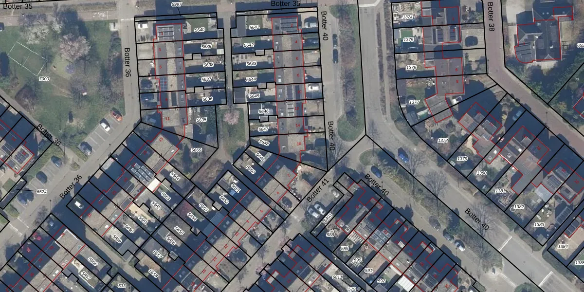 Botter 40 16 is gelegen op kadastraal perceel LLS00O5648. Deze kadastrale aanduiding is uniek en wordt gebruikt door het Kadaster om eigendomsrechten en andere zakelijke rechten vast te leggen. Het perceel maakt onderdeel uit van de kadastrale gemeente Lelystad.