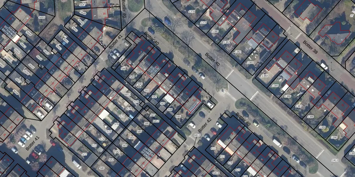 Botter 40 28 is gelegen op kadastraal perceel LLS00O593. Deze kadastrale aanduiding is uniek en wordt gebruikt door het Kadaster om eigendomsrechten en andere zakelijke rechten vast te leggen. Het perceel maakt onderdeel uit van de kadastrale gemeente Lelystad.
