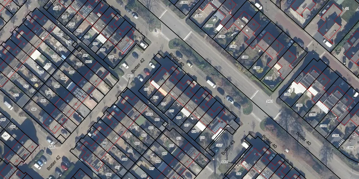 Het perceel waarop Botter 40 38 staat heeft een oppervlakte van 143 m². Dit is een middelgroot perceel. De perceeloppervlakte wordt geregistreerd door het Kadaster. Gedetailleerde informatie over de maten van dit perceel kunt u vinden in het rapport Kadastrale kaart met maatvoering van Botter 40 38.