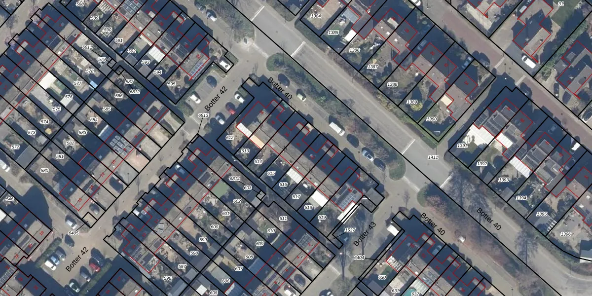 Het perceel waarop Botter 40 40 staat heeft een oppervlakte van 143 m². Dit is een middelgroot perceel. De perceeloppervlakte wordt geregistreerd door het Kadaster. Gedetailleerde informatie over de maten van dit perceel kunt u vinden in het rapport Kadastrale kaart met maatvoering van Botter 40 40.