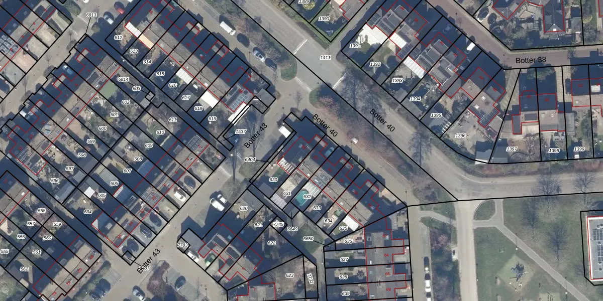 Botter 40 50 is gelegen op kadastraal perceel LLS00O630. Deze kadastrale aanduiding is uniek en wordt gebruikt door het Kadaster om eigendomsrechten en andere zakelijke rechten vast te leggen. Het perceel maakt onderdeel uit van de kadastrale gemeente Lelystad.