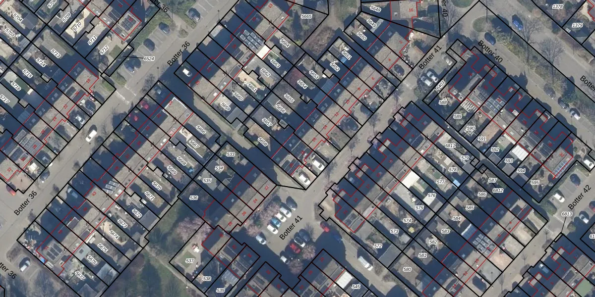 Het perceel waarop Botter 41 18 staat heeft een oppervlakte van 175 m². Dit is een middelgroot perceel. De perceeloppervlakte wordt geregistreerd door het Kadaster. Gedetailleerde informatie over de maten van dit perceel kunt u vinden in het rapport Kadastrale kaart met maatvoering van Botter 41 18.