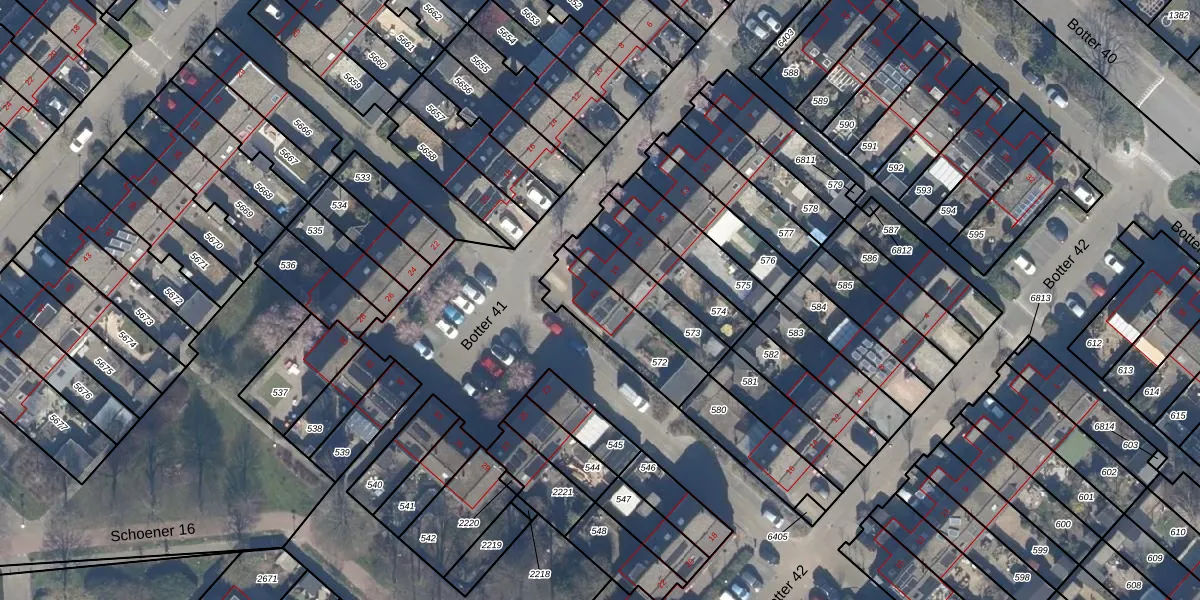 Het perceel waarop Botter 41 21 staat heeft een oppervlakte van 247 m². Dit is een middelgroot perceel. De perceeloppervlakte wordt geregistreerd door het Kadaster. Gedetailleerde informatie over de maten van dit perceel kunt u vinden in het rapport Kadastrale kaart met maatvoering van Botter 41 21.