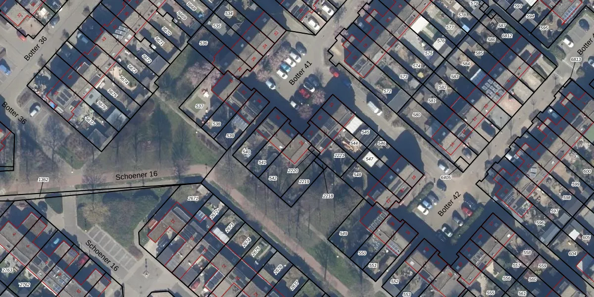 Het perceel waarop Botter 41 29 staat heeft een oppervlakte van 197 m². Dit is een middelgroot perceel. De perceeloppervlakte wordt geregistreerd door het Kadaster. Gedetailleerde informatie over de maten van dit perceel kunt u vinden in het rapport Kadastrale kaart met maatvoering van Botter 41 29.