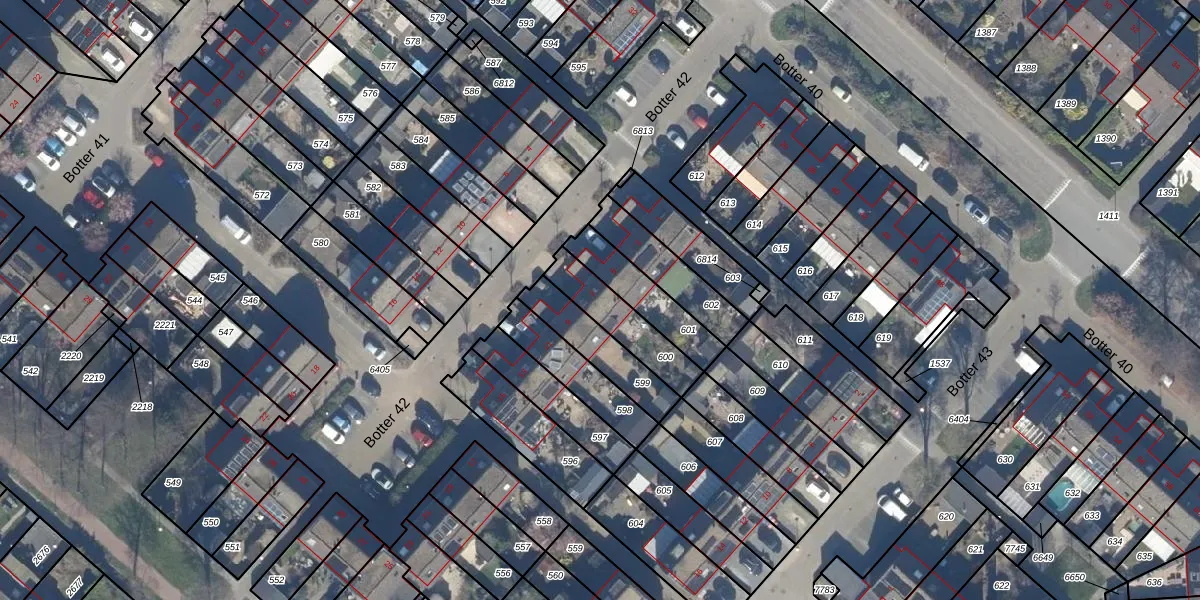 Botter 42 7 is gelegen op kadastraal perceel LLS00O600. Deze kadastrale aanduiding is uniek en wordt gebruikt door het Kadaster om eigendomsrechten en andere zakelijke rechten vast te leggen. Het perceel maakt onderdeel uit van de kadastrale gemeente Lelystad.