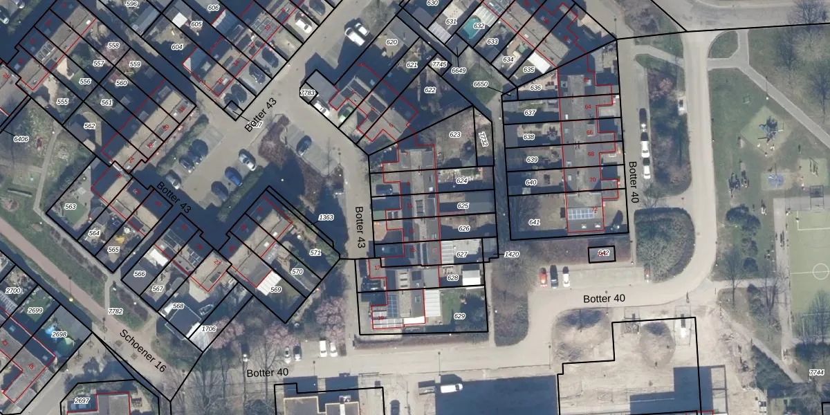 Het perceel waarop Botter 43 11 staat heeft een oppervlakte van 170 m². Dit is een middelgroot perceel. De perceeloppervlakte wordt geregistreerd door het Kadaster. Gedetailleerde informatie over de maten van dit perceel kunt u vinden in het rapport Kadastrale kaart met maatvoering van Botter 43 11.