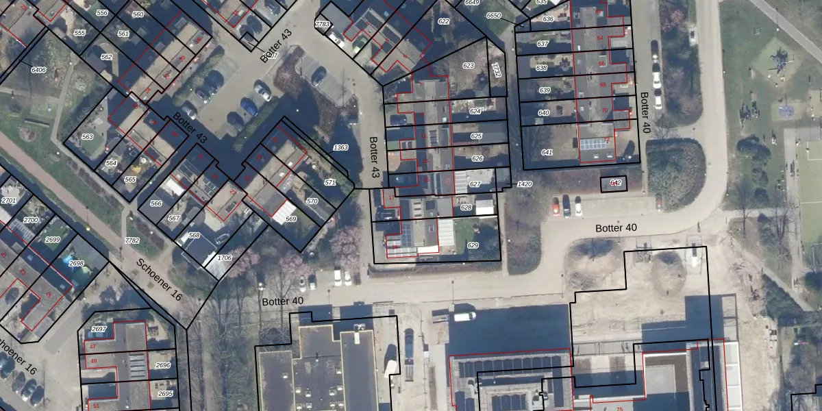 Het perceel waarop Botter 43 17 staat heeft een oppervlakte van 188 m². Dit is een middelgroot perceel. De perceeloppervlakte wordt geregistreerd door het Kadaster. Gedetailleerde informatie over de maten van dit perceel kunt u vinden in het rapport Kadastrale kaart met maatvoering van Botter 43 17.