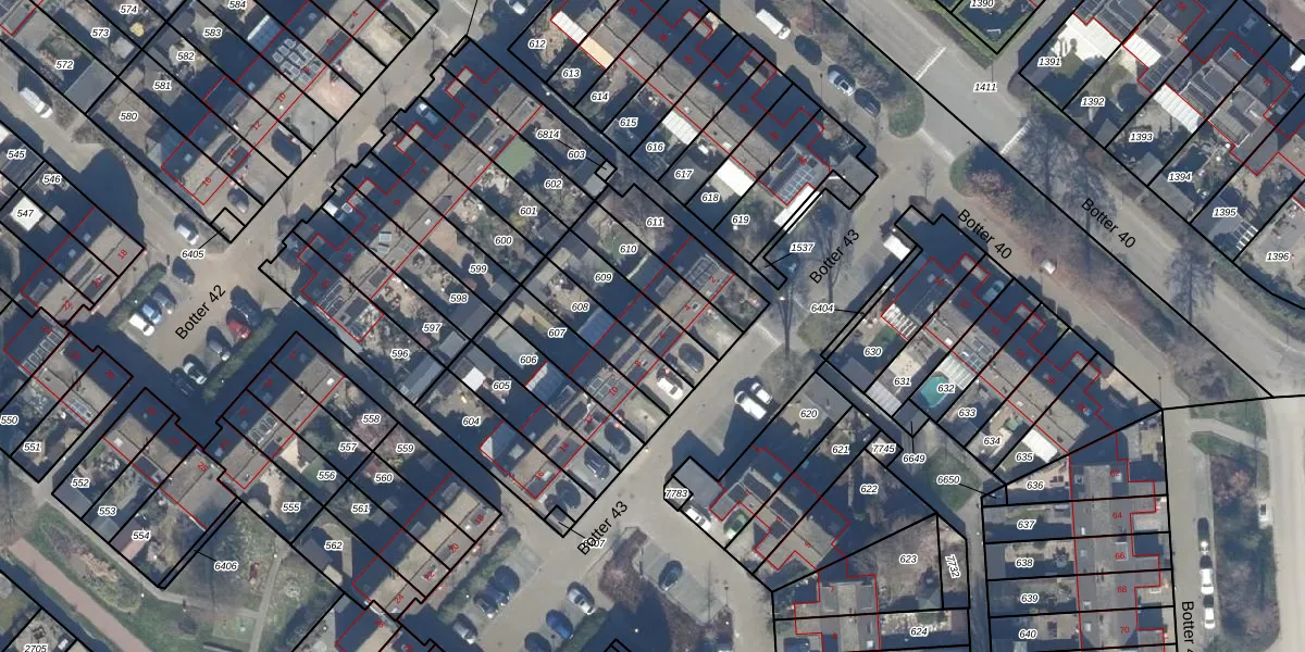 Botter 43 6 is gelegen op kadastraal perceel LLS00O609. Deze kadastrale aanduiding is uniek en wordt gebruikt door het Kadaster om eigendomsrechten en andere zakelijke rechten vast te leggen. Het perceel maakt onderdeel uit van de kadastrale gemeente Lelystad.