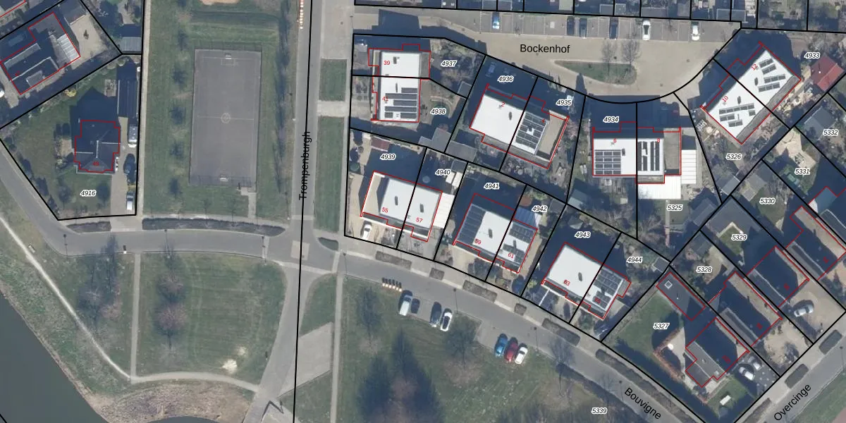 Gebruik de zoekbalk of klik op een perceel voor informatie over de adressen binnen dit perceel.