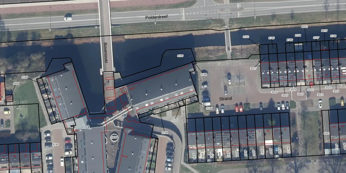 Het perceel waarop Bovenover 71 staat heeft een oppervlakte van 3608 m². Dit is een zeer groot perceel. De perceeloppervlakte wordt geregistreerd door het Kadaster. Gedetailleerde informatie over de maten van dit perceel kunt u vinden in het rapport Kadastrale kaart met maatvoering van Bovenover 71.