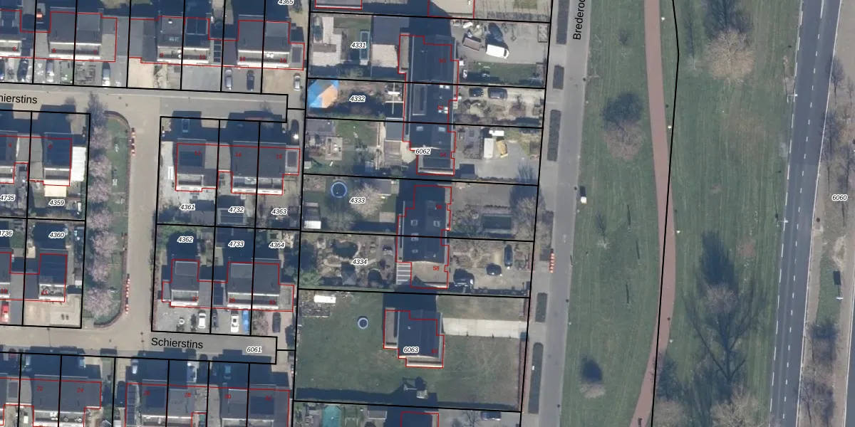 Brederode 56 is gelegen op kadastraal perceel LLS00P4333. Deze kadastrale aanduiding is uniek en wordt gebruikt door het Kadaster om eigendomsrechten en andere zakelijke rechten vast te leggen. Het perceel maakt onderdeel uit van de kadastrale gemeente Lelystad.