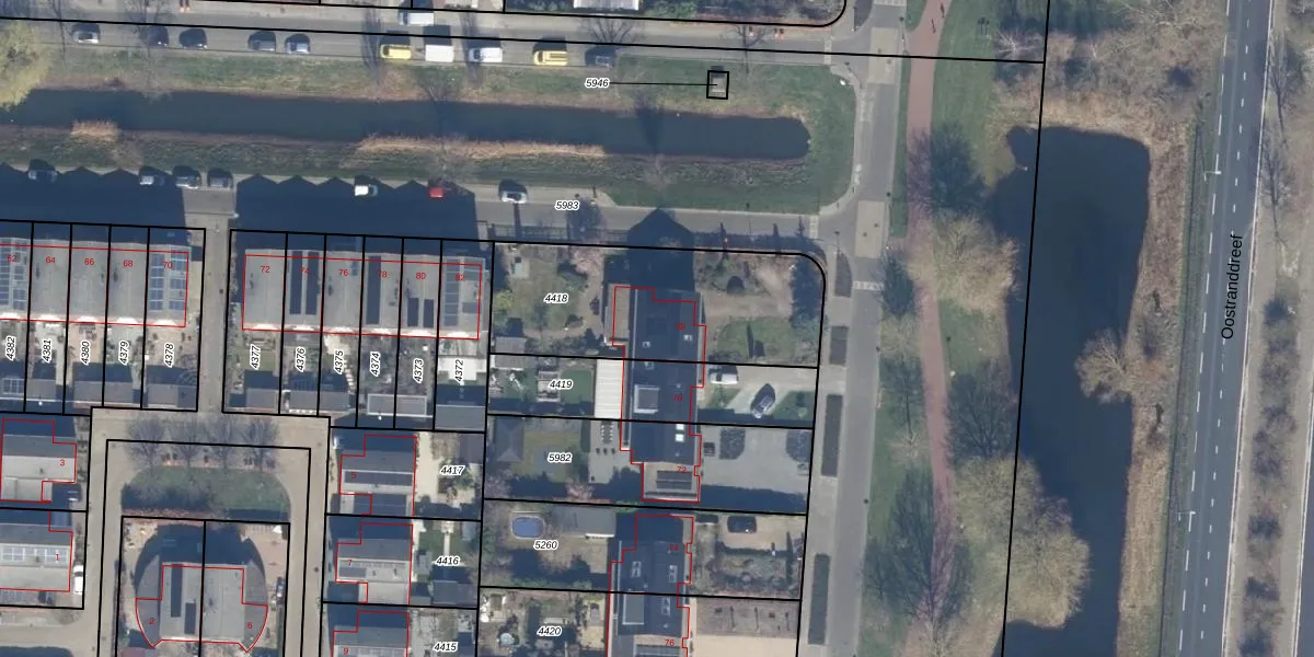 Gebruik de zoekbalk of klik op een perceel voor informatie over de adressen binnen dit perceel.