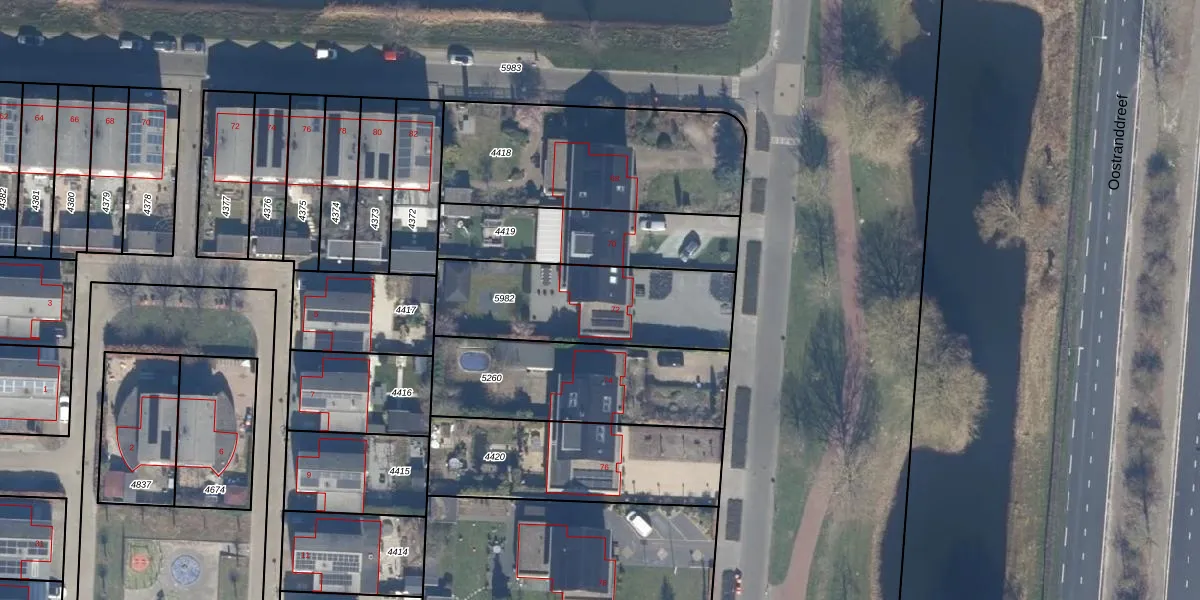 Gebruik de zoekbalk of klik op een perceel voor informatie over de adressen binnen dit perceel.