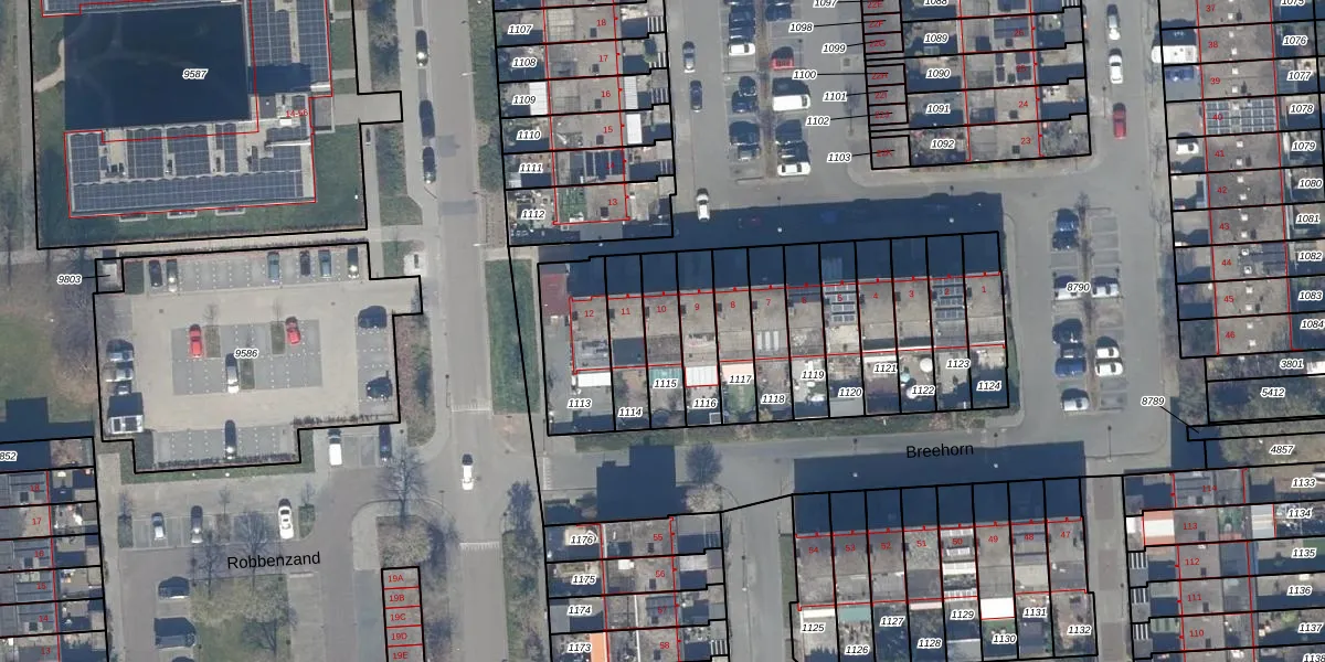 Gebruik de zoekbalk of klik op een perceel voor informatie over de adressen binnen dit perceel.