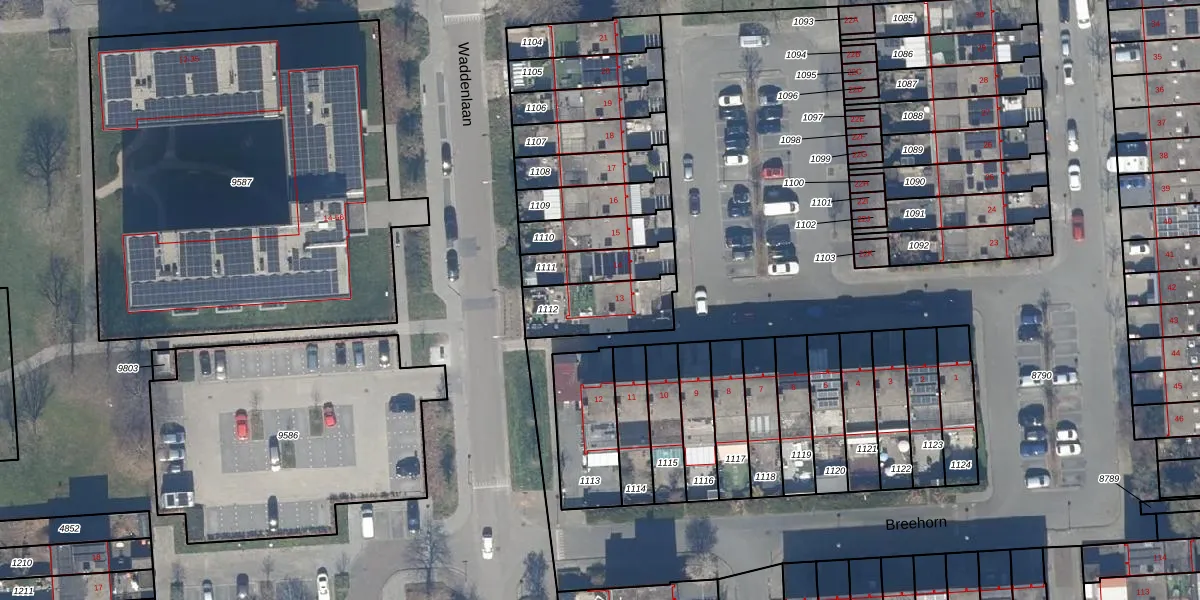 Gebruik de zoekbalk of klik op een perceel voor informatie over de adressen binnen dit perceel.